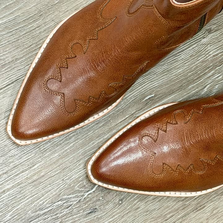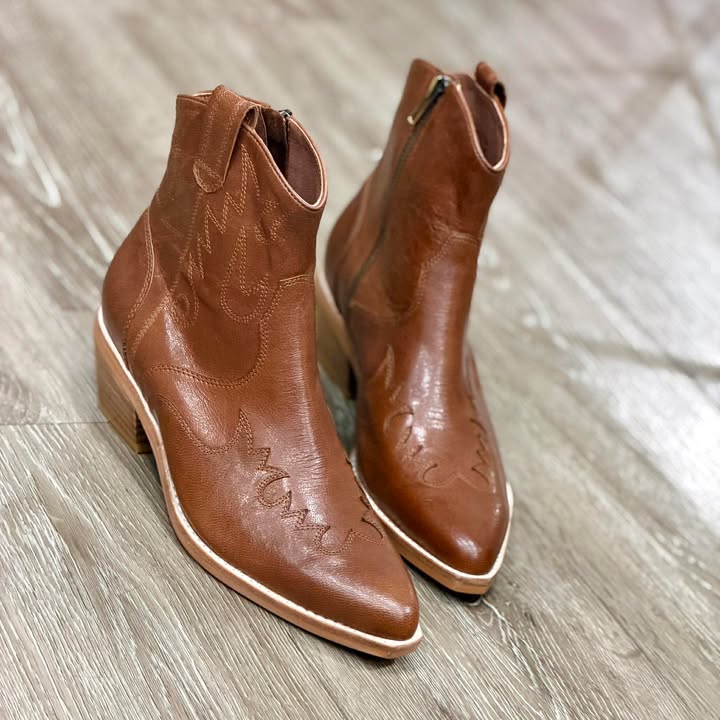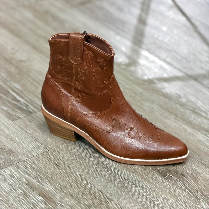 Meet your new everyday statement boot Crafted in rich tan leather, this ankle boot blends...