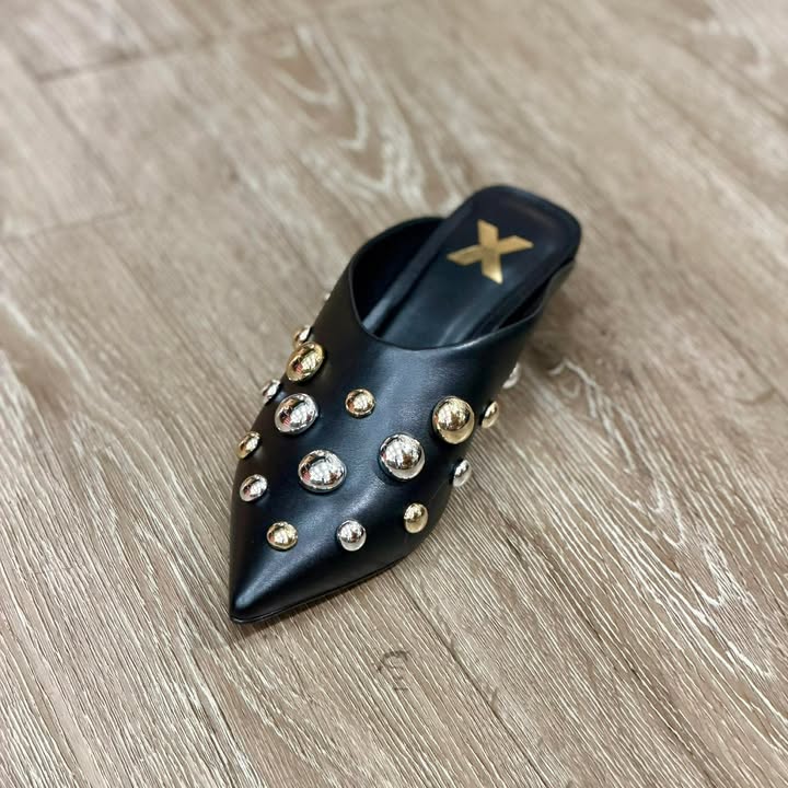This sleek black leather mule is your go-to statement flat, designed to elevate even the...
