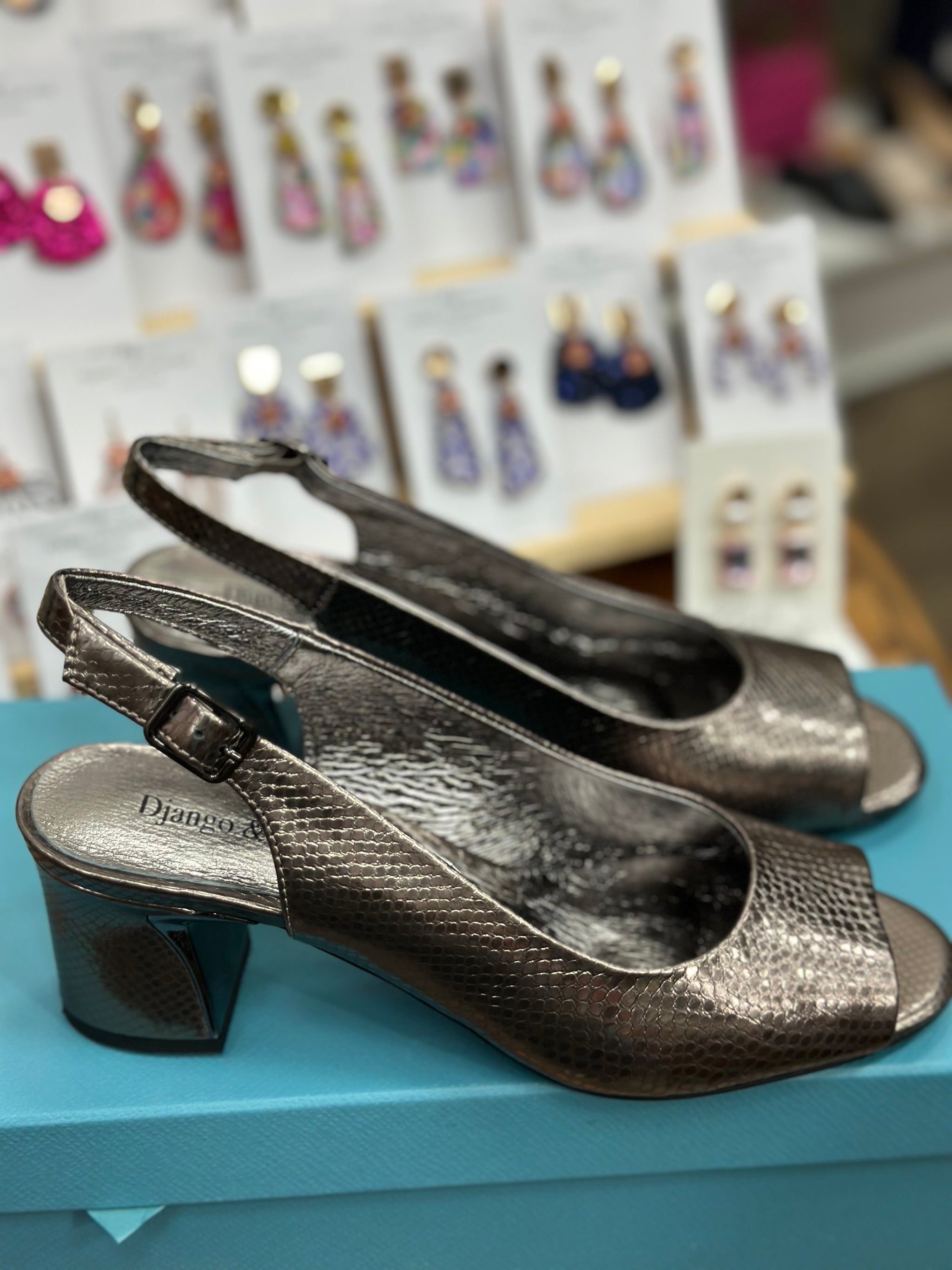 Sharply styled for a night out, these leather heels are event-ready. KIANNA by Django &...