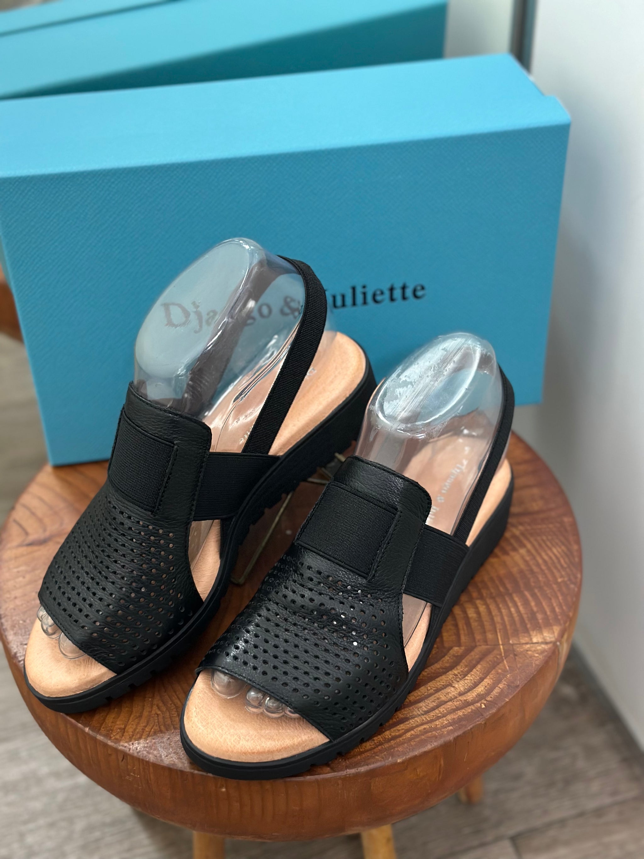 Leather sandals with chic laser-cut details, ANSH by Django & Juliette is a contemporary summer...