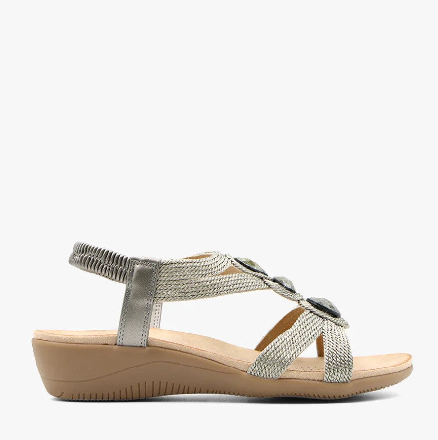 Meet the Connie Wedge Sandal—where style meets comfort. Featuring a small, easy-to-wear wedge and a...