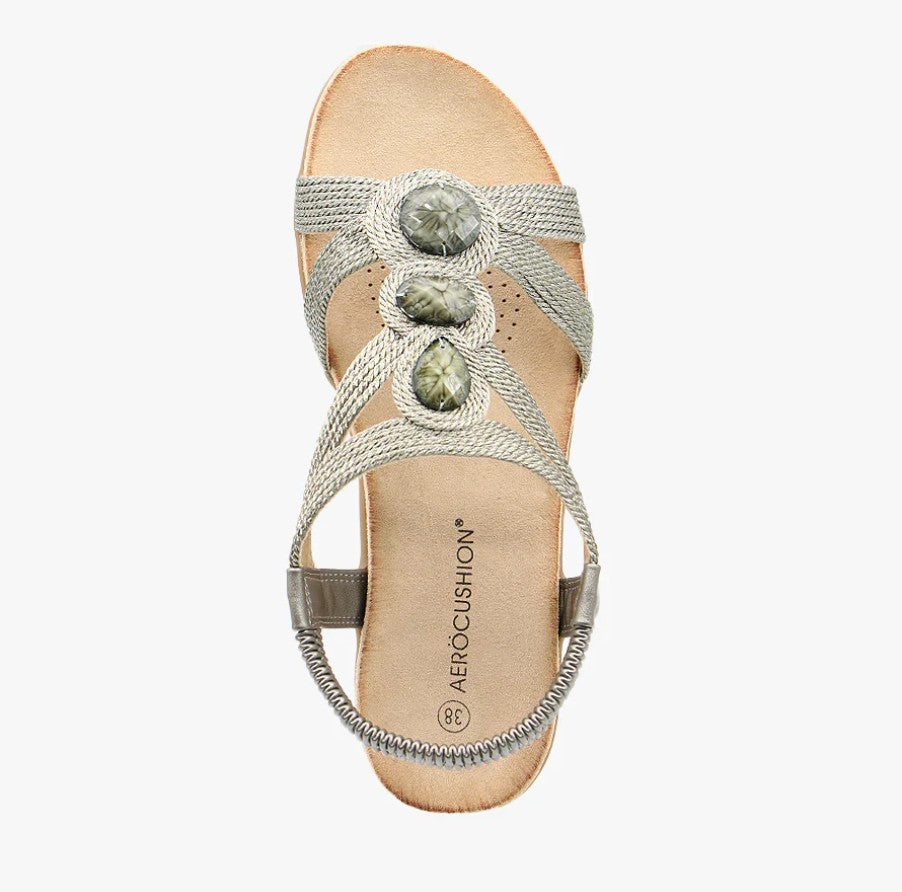 The ideal comfort sandal Aliah, feature soft European leather with gathered detail and an incredible foot-bed....